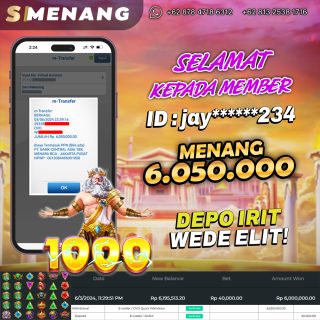 Selamat kepada FE****UI atas kemenangannya di permainan Slot GATES OF OLYMPUS 1000, meraih total hadiah senilai Rp 8.350.000,- hanya dengan… Selengkapnya »PEMBAYARAN WITHDRAW 8,3JT USER ID FE****UI PERMAINAN SLOT : GATES OF OLYMPUS 1000, LUNAS !!!