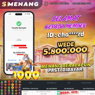 Selamat kepada SU*****AR9 atas kemenangannya di permainan Slot GATES OF OLYMPUS 1000, meraih total hadiah senilai Rp 8.400.000,- hanya dengan… Selengkapnya »PEMBAYARAN WITHDRAW 8,4 JUTA USER ID SU*****AR9 PERMAINAN SLOT : GATES OF OLYMPUS 1000, LUNAS !!!
