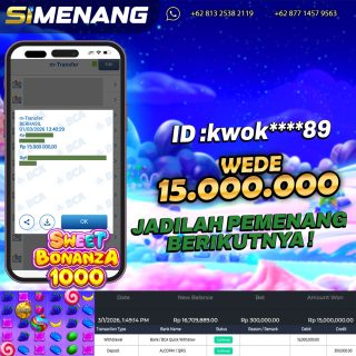 PEMBAYARAN WITHDRAW 8 JUTA USER ID KUN****99 PERMAINAN SLOT : SWEET BONANZA 1000, LUNAS !!!
